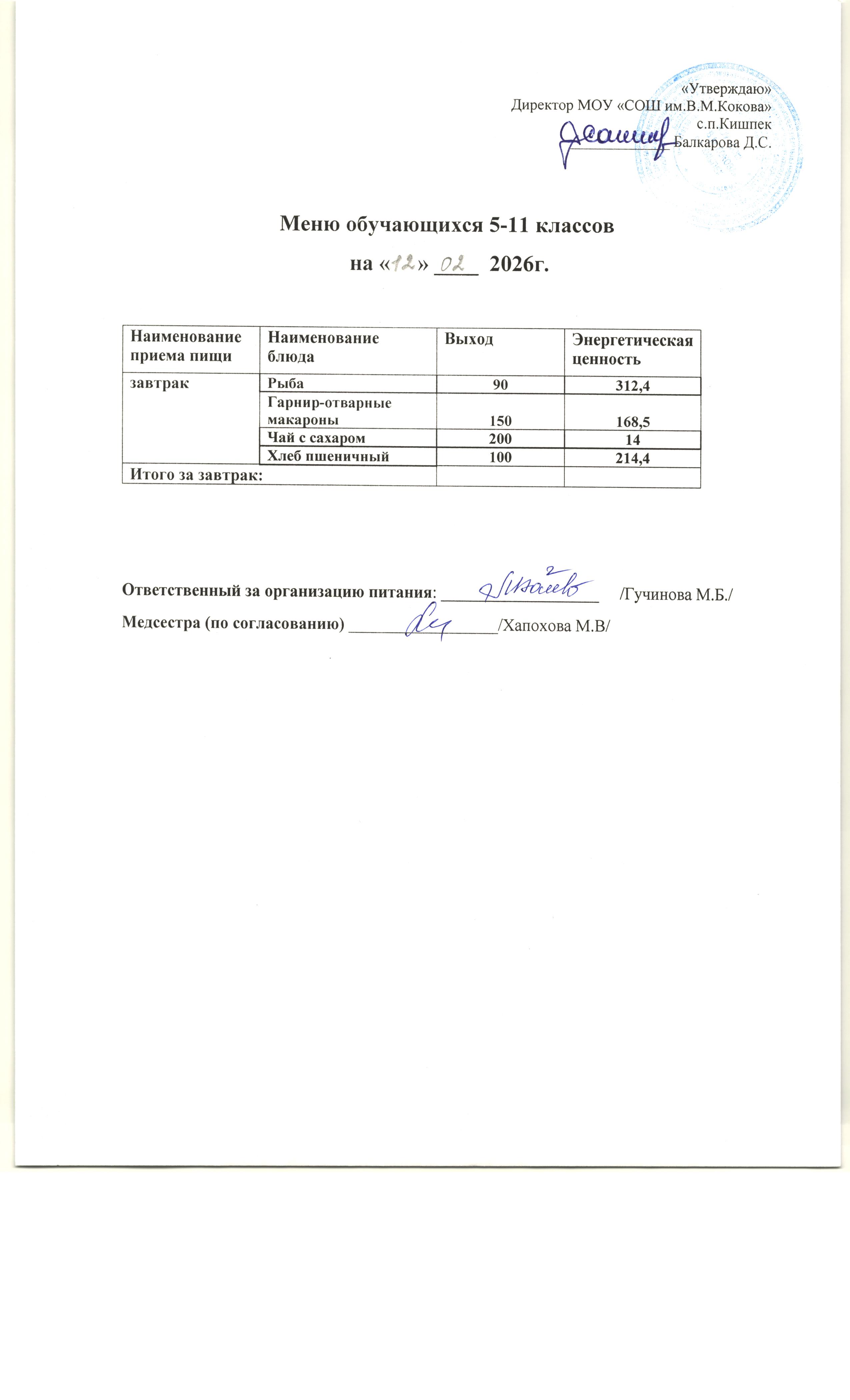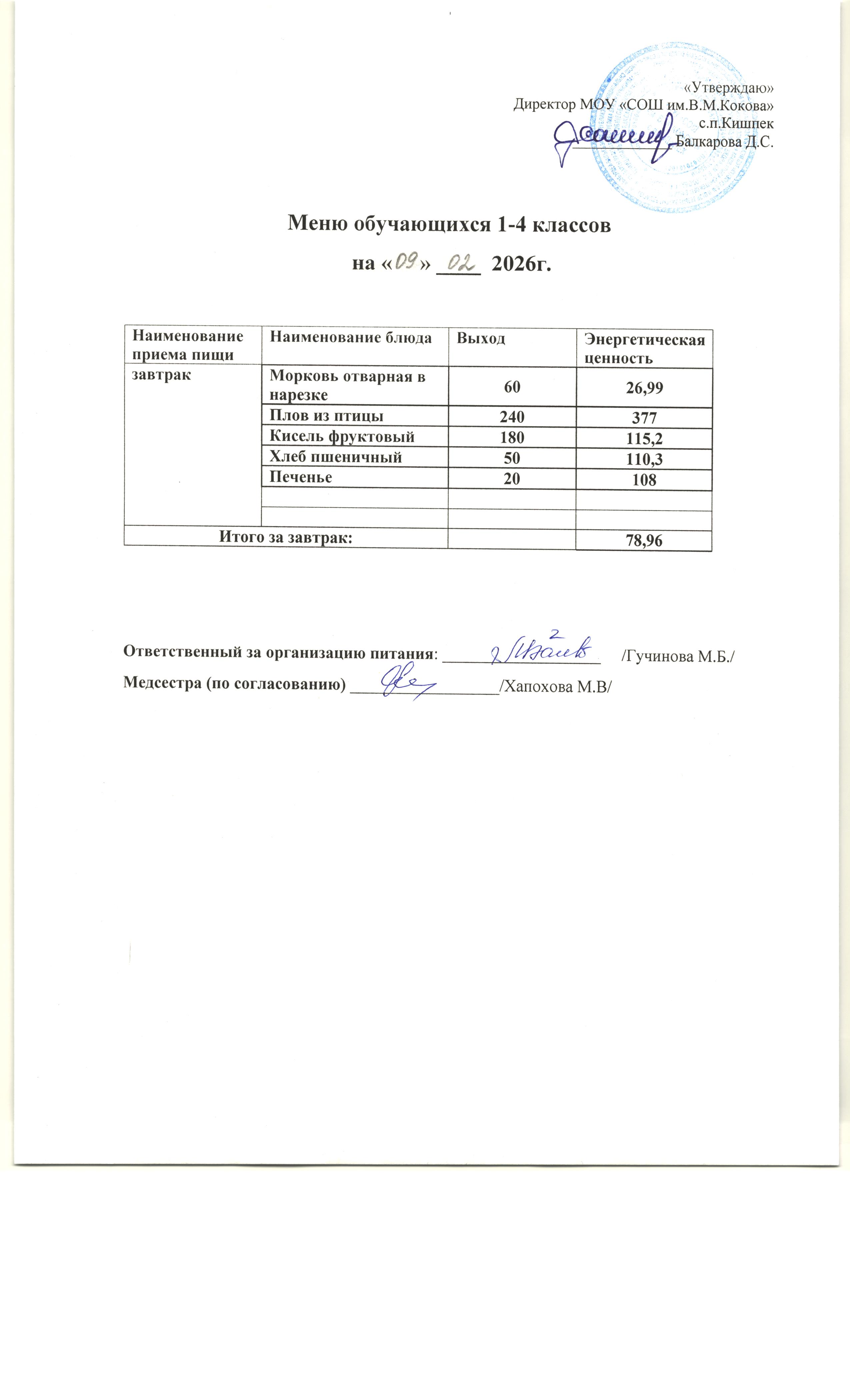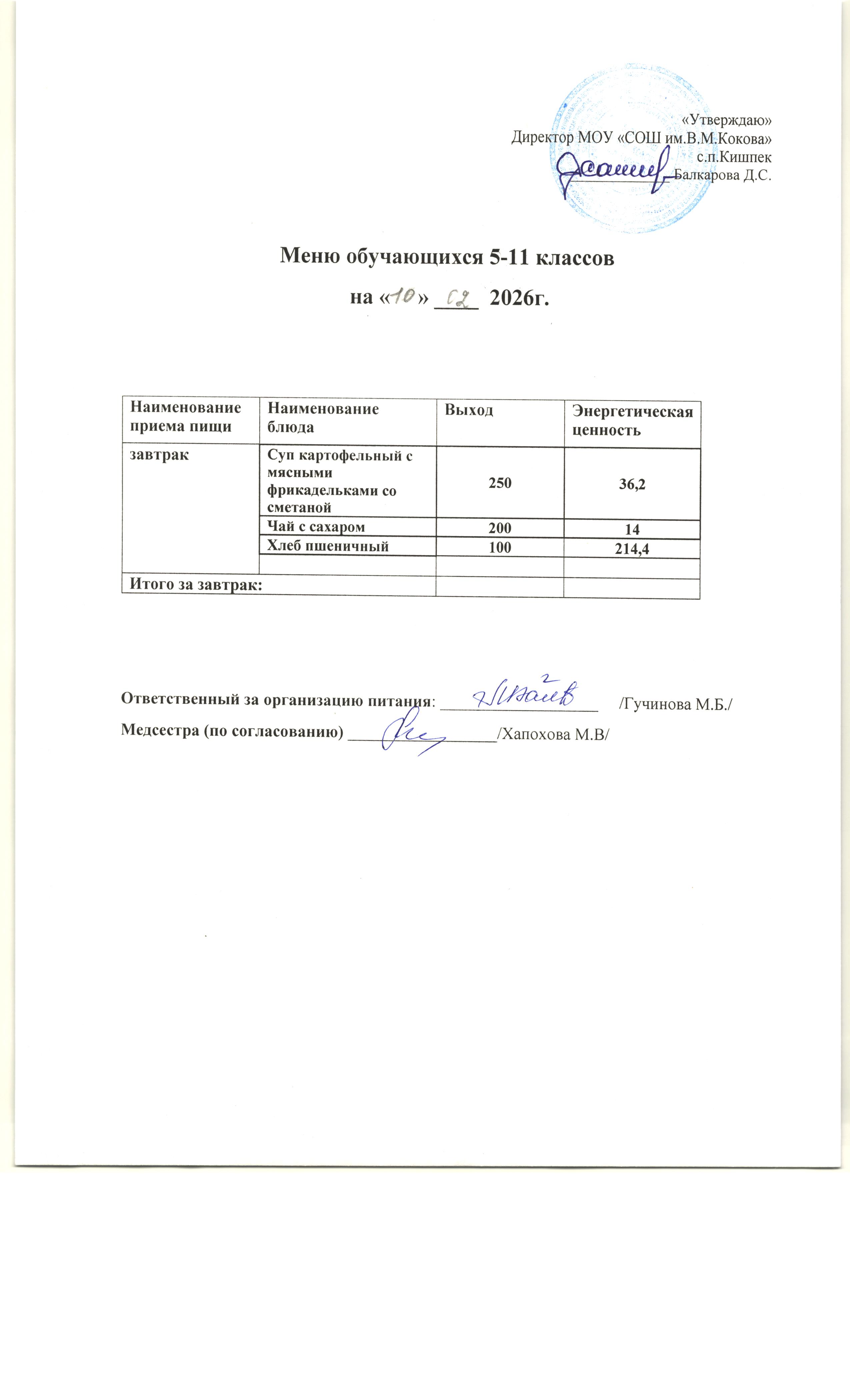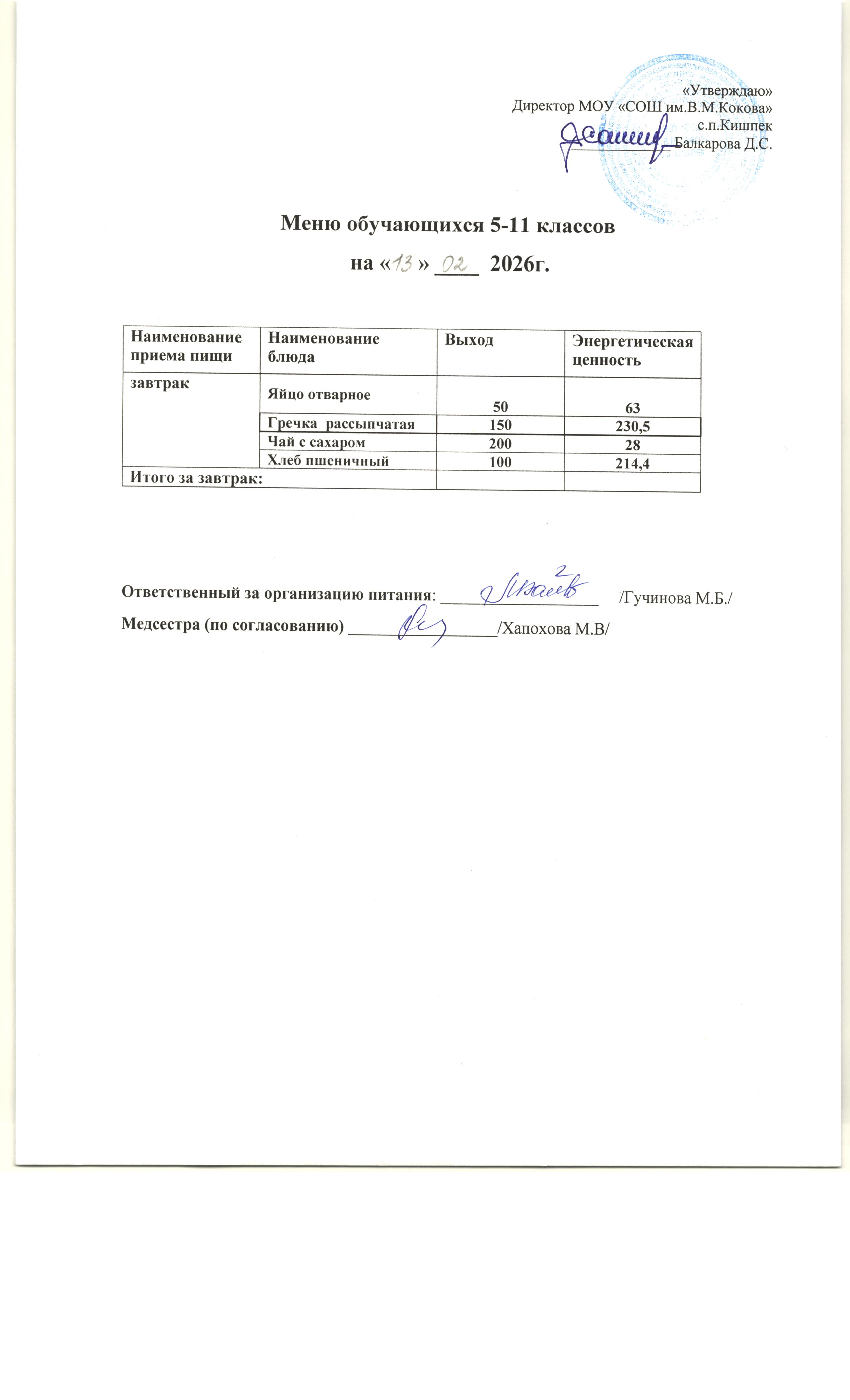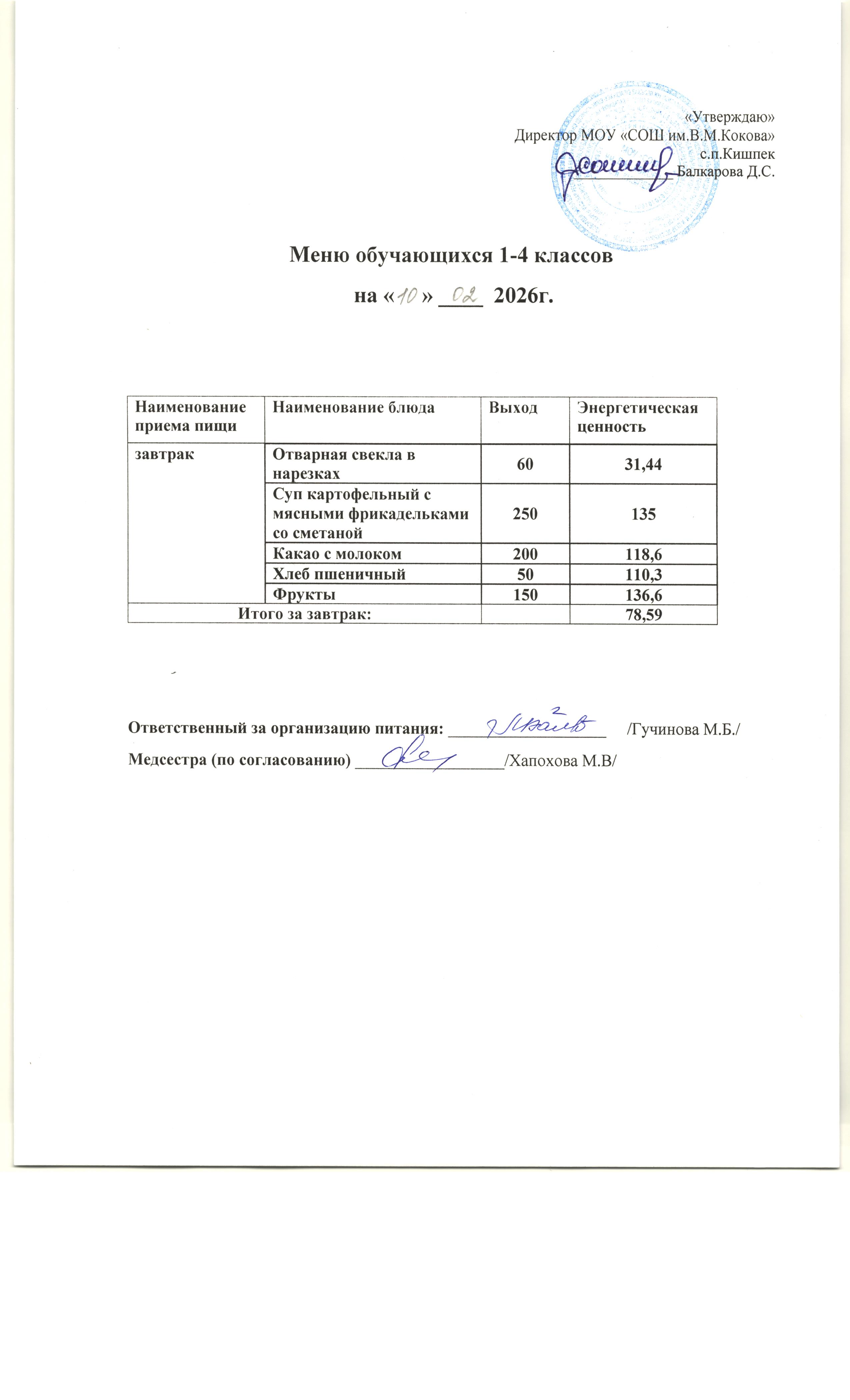 об условиях питания и охраны здоровья обучающихся в МОУ "СОШ им.В.М.Кокова" с.п.Кишпек